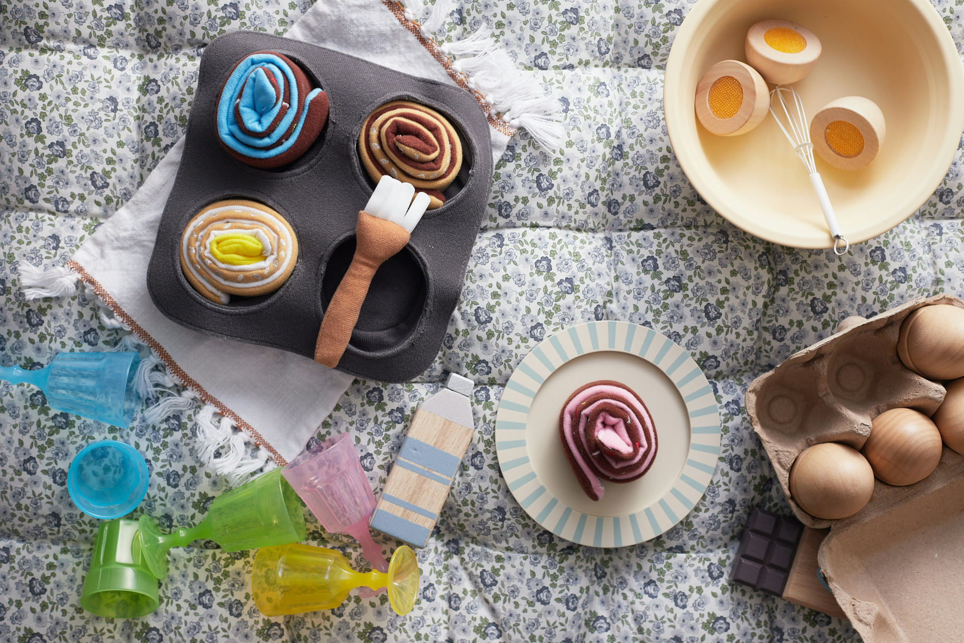 Sættet er velegnet til brug sammen med legekøkkener eller som selvstændigt legetøj, hvor børn kan efterligne madlavning og servering i trygge rammer.