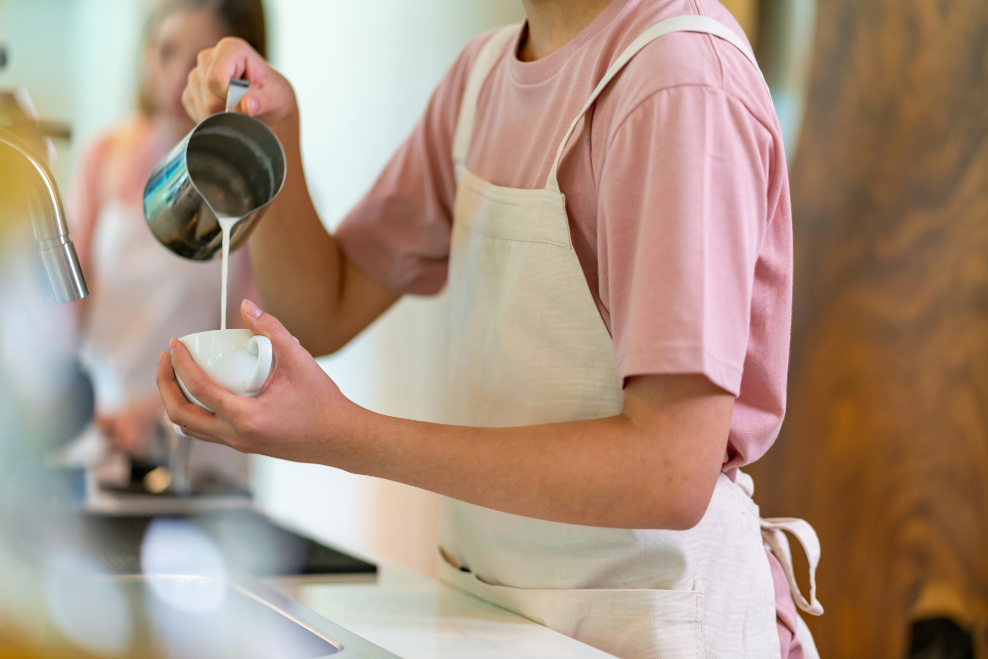 Nogle espressomaskiner har en indbygget mælkeskummer eller dampdyse. Denne løsning er oplagt, hvis du ofte laver mælkebaserede kaffedrikke og ønsker fuld kontrol over skum og temperatur.
